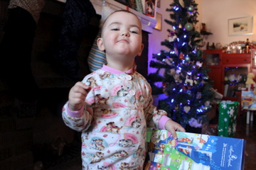 Autumn's second Christmas was awesome. She got royally spoiled and was the centre of attention all day long. Teddy and I woke up at 5:30am super excited and not able to sleep so we got up, brewed some coffee and spent two and a half hours waiting for Squish to wake up so that we could watch her open her gifts. When she finally woke up, we had a delicious pancake brekkie and snapped a million pictures of her ripping off wrapping paper and playing with her new toys. She seemed a bit frustrated as we kept handing her new parcels and she hadn't had much of a chance to play with the items that she had already opened. Thankfully, she has had most of today to play at her leisure in her jammies. Lucky little bug.